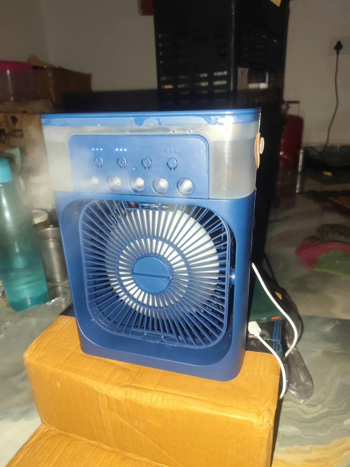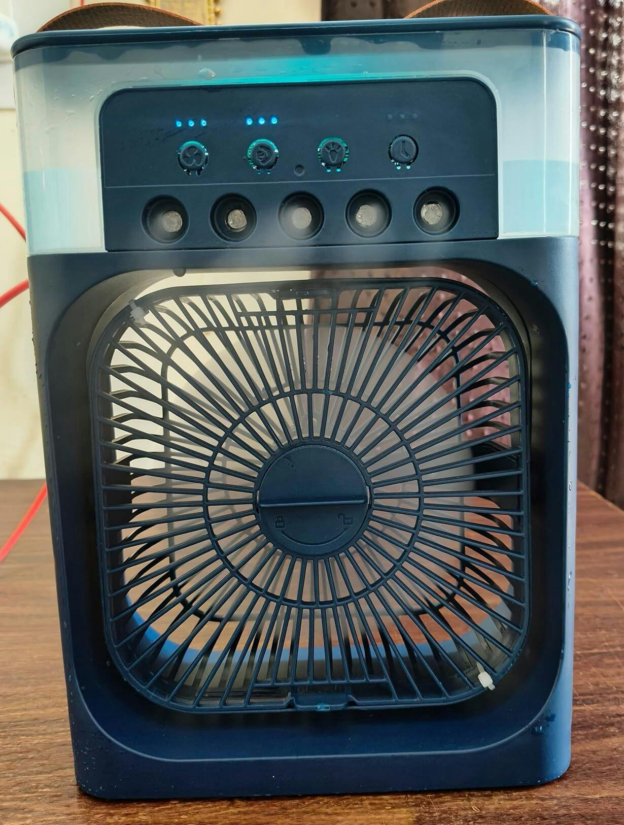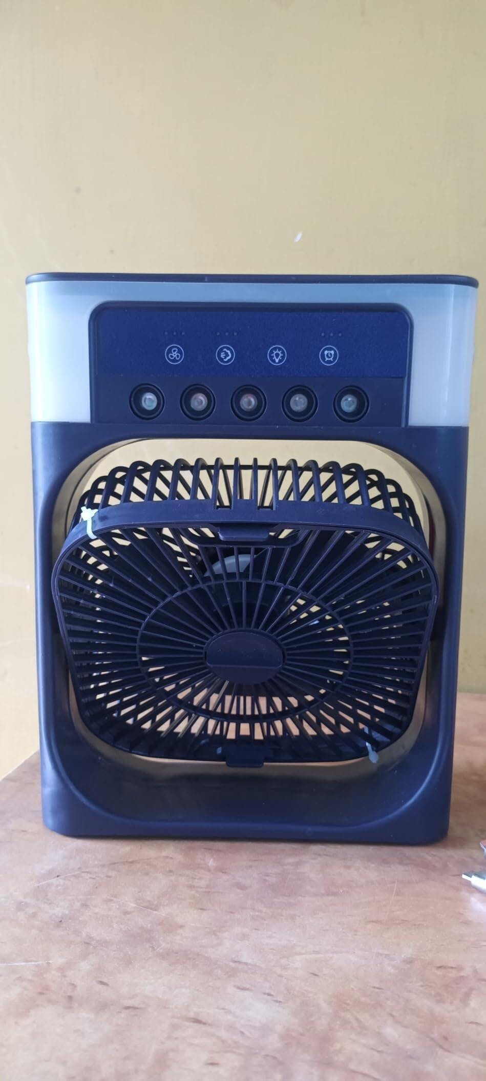 The best product in a minimal price. This isn’t just a personal portable cooler fan — it’s a multifunctional device! My friends and relatives love it for its lightweight build (under 2 lbs), USB charging, 3-speed settings, LED lighting, and the fact that it runs “all night” — a lifesaver during those hot flashes! Its sleek design, vibrant color, and eye-catching shape make it truly mesmerizing. Its features like LED mood lighting, a rechargeable battery, a water/ice tank, and a compact desktop-friendly size make it worth to buy. Perfect to use as a traveling fan, nightstand, a flashlight, or even using as a mini fan in a kitchen or bedroom. The colorful LED lights are especially appealing to kids and infants. One of the coolest features is the ability to add a few drops of perfume to the water tank for a refreshing mist with a lovely fragrance. It offers impressively powerful airflow with multiple fan speeds — At such an affordable price, This product is absolutely wow-worthy!
